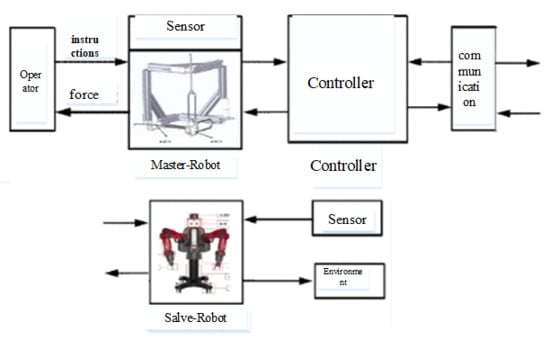 7]. This work develops an advanced teleoperation and control system for industrial robots in order to assist the human operator to perform the mentioned tasks. They also expand or extend the ability of some special professionals to complete some complex professional and technical works through remote control, such as operations for patients in remote areas. This type of master–slave teleoperation system can be divided into isomorphism and asymmetric. For the Rokviss teleoperation robot, which was developed in Germany, its main application task is to complete the international space station and perform some ground experiments [