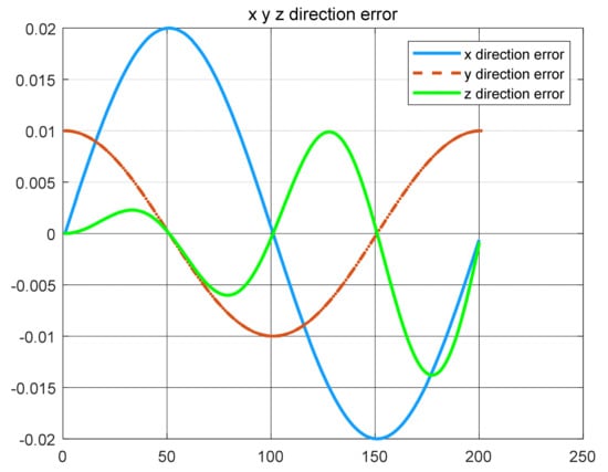Section 4 and simulation experiments was carried out on the new control algorithm. The results showed that the maximum values of displacement tracking errors in the three directions x, y, and z are 0.02 m, 0.01 m, and 0.015 m, respectively (as shown in
