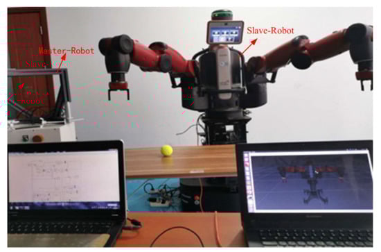 31]. The accuracy, tracking, and transparency of the system in the actual control cannot meet the expectations. After adding the model error to the original system dynamics equation, the dynamics of the master–slave robot teleoperation system is described as follows: