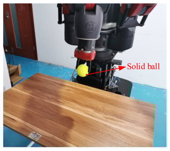 When the object is a solid ball, the elastic coefficient of the object is bigger, and the parameter of B is bigger. The interaction force can be measured by the force sensor which is fixed on the wrist. Then, it can be transferred to the master–robot by network. The solid yellow ball selected in this experiment is shown in