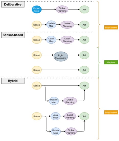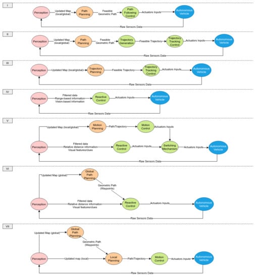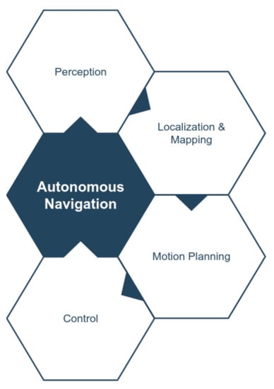 Mobility-related modules are the core components needed to ensure collision-free navigation in all applications. By considering only the mobility-related components, a popular modular structure for autonomous navigation is adopted in the literature which consists of the following modules/subsystems (Figure 5):