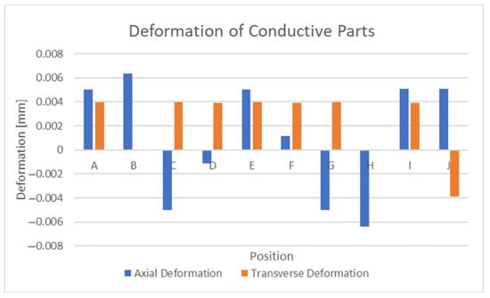 These simulations have assumed that both the conductor and substrate have a linear elastic stress response and, thus, more complex effects such as creep have been neglected. Such an assumption has been made about polyimide materials based on the stress-strain relationship reported in [48,49]. The material properties relevant to this discussion can be found in Table 5. Also, all of these material parameters may differ significantly depending on the fabrication method, materials and the fabrication environment. Such variations may be isotropic or anisotropic [50,51] in nature. Another point of note is that this analysis has no temporal component but in reality, the substrate and conductive materials would not conduct/radiate or absorb/release temperature or moisture instantaneously.