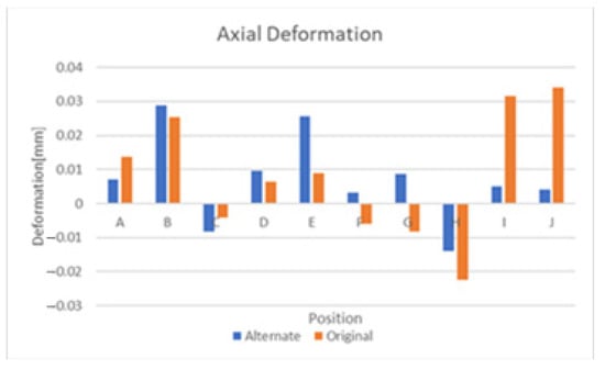 The convergence of the results of the axial deformation tests was achieved through iteratively increasing the element count in each part of the design. As thermal expansion led to comparable deformation levels when used with the same boundary conditions as the axial deformation, it was found that increasing mesh resolution under this loading strategy did not alter the results of these tests significantly. Thus, the same mesh was used throughout all of the analysis.