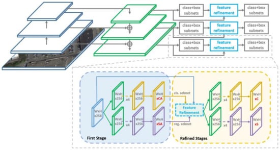 The overall frame of R3Det [] network is shown in Figure 3. R3Det network is divided into three parts: