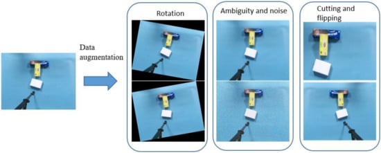 The size of the data set plays a vital role in achieving good performance of neural network model training. Data set enhancement is a method to generate data equivalent to the original data set through a series of transformations. Thus, the target network can be applied in various scenarios, such as different shooting direction, location and illumination when collecting data. In this paper, the original data set is enhanced by horizontal reversal, rotation, clipping, blurring and Gaussian noise, as shown in Figure 6. For each image, random transformation is carried out according to the probability set by each transformation, and the transformation method can be superimposed. Therefore, the new data generated may contain multiple transformations.
