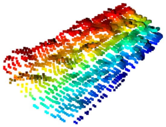 In order to improve the processing speed of point cloud and maintain its inherent geometric characteristics at the meantime, the point cloud is processed by down-sampling so that the number of points in the point cloud is reduced from 10,000 to about 3000. The point cloud after down-sampling is shown in Figure 12.