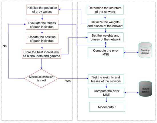 The primary task of GWO is to find the optimal set of network connections (weights and biases). For the hidden nodes in the MLP, there is no standard way to determine their number. Therefore, GWO uses a fixed structure for MLP with the number of nodes determined based on Equation (15):
