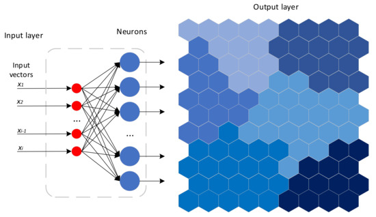 - Kohonen, T. Self-Organizing Maps, 3rd ed.; Springer Series in Information Sciences; Springer: Berlin/Heidelberg, Germany, 2001. [Google Scholar]