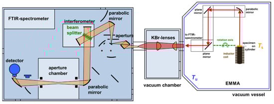 The measurement procedure of the EMMA and the underlying theory was described in detail in a previous publication []. Hence, only a brief introduction for measuring opaque specimens with vanishing transmissivity is given below.