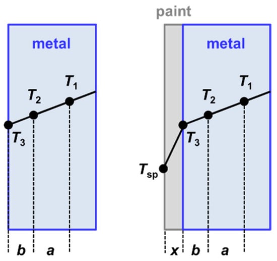 According to Equation (6) it can be assumed that and the surface temperature of the paint Tsp can be determined
