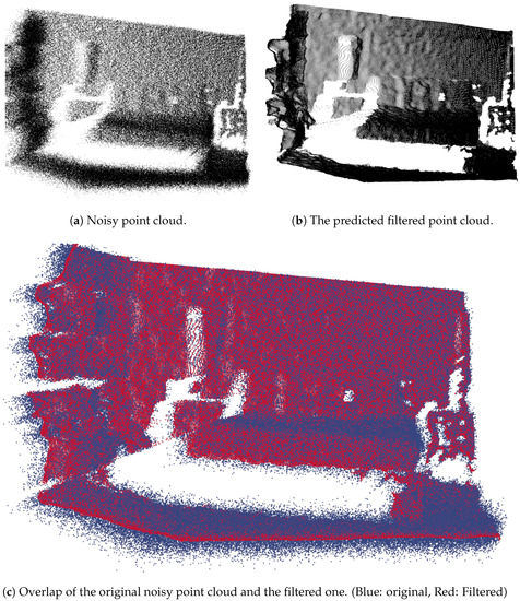 - Rakotosaona, M.J.; La Barbera, V.; Guerrero, P.; Mitra, N.J.; Ovsjanikov, M. PointCleanNet: Learning to Denoise and Remove Outliers from Dense Point Clouds. Comput. Graph. Forum 2020, 39, 185–203. [Google Scholar] [CrossRef] [Green Version]