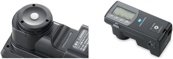 The reference Minolta CL-500A provides the irradiance every nm from 360–780 nm, as well as the total illuminance (Figure 3). The codes for collecting the irradiance data from the reference sensor can be found in the following GitHub repository: https://github.com/yichigo/Minolta-Sensor, accessed 18 March 2021.