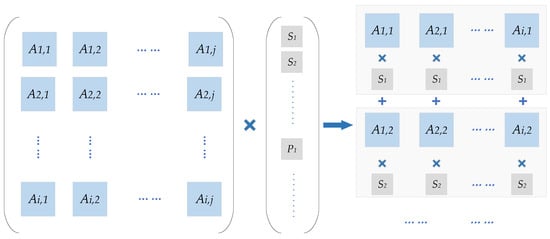 Divide into four vectors , , , and with length Z and assign the result as , where is the element of each row of A matrix. is the code word of each segment Z in the information S. This calculation is actually to cyclic shift the Z-length code block corresponding to each element of the PCM, and the number of shifts is the value of the element, that is, the cyclic shift coefficient.