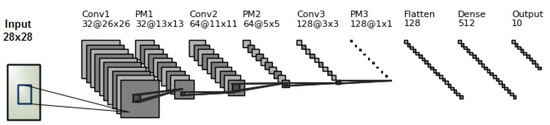As shown in Figure 6, our CNN has three convolution layers. , , and , with 32, 64, and 128 filters of size are used to generate 32, 64, and 128 feature maps, then rectified linear units (ReLUs, are utilized for nonlinearity.