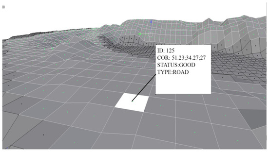 In accordance with the proposed computational models for building an infrastructure agent of a quarry, we considered a fragment of the technological environment, the characteristics (meaning the area) of which are presented in Table 3, and its visual interpretation is reflected in Figure 8.