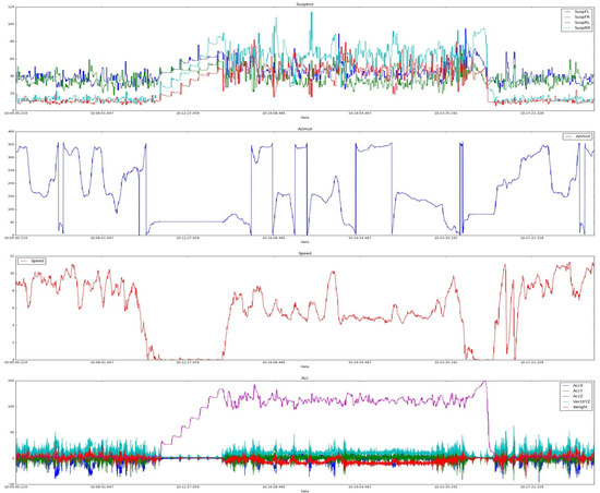 Figure 6. Examples of data of onboard telemetry of heavy dump trucks.