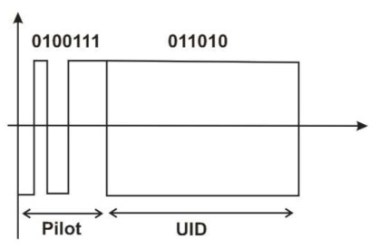 For establishing communication, first the reader sends a query command and a continuous carrier wave. Considering the tag energy consumption problem, the query is set as a negative trigger signal. After the tag successfully recognizes the negative trigger, the backscatter signal is changed by changing the frontend impedance. The data format of the backscatter signal is as shown in Figure 4.
