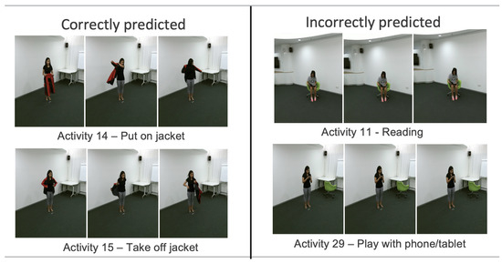 On the other hand, the activities ‘put on jacket’ and ‘take off jacket’ are correctly classified most of the time because the movements of the body show clear displacements over time, canceling the possible errors carried by the joints’ information.