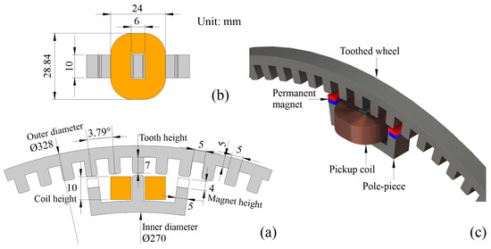 . The tooth wheel consists of 90 equally spaced teeth, and other geometrical parameters of the prototype are shown in