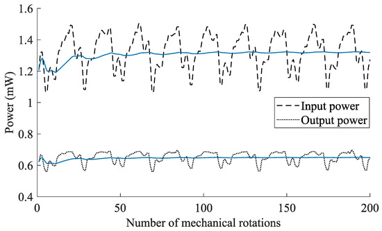 ) of the BQ25570. In order to minimize the effects of these variations, all measurements are conducted over a number of full rotations (200 mechanical rotations). An example for this averaging process is given in