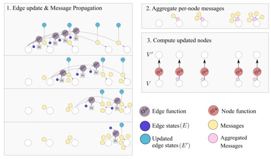 - Gilmer, J.; Schoenholz, S.S.; Riley, P.F.; Vinyals, O.; Dahl, G.E. Neural message passing for quantum chemistry. arXiv 2017, arXiv:1704.01212. [Google Scholar]