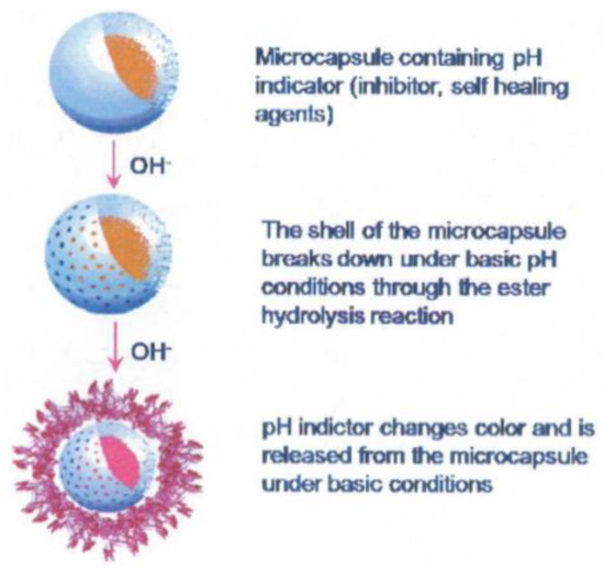 - Calle, L.M.; Li, W. Microencapsulated indicators and inhibitors for corrosion detection and control. Handb. Smart Coat. Mater. Prot. 2014, 370–422. [Google Scholar]