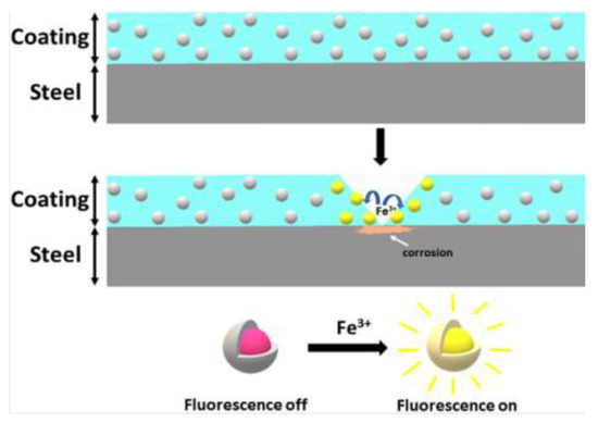 - Exbrayat, L.; Salaluk, S.; Uebel, M.; Jenjob, R.; Rameau, B.; Koynov, K.; Landfester, K.; Rohwerder, M.; Crespy, D. Nanosensors for Monitoring Early Stages of Metallic Corrosion. ACS Appl. Nano Mater. 2019, 2, 812–818. [Google Scholar] [CrossRef] [Green Version]