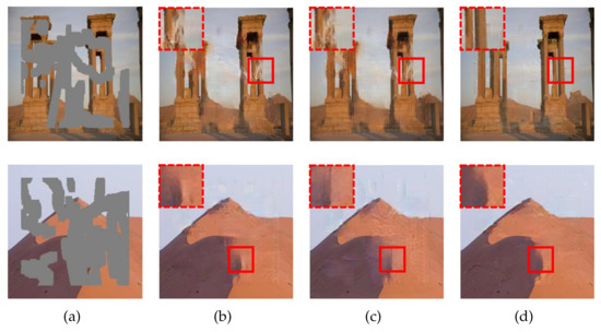 - Pathak, D.; Krähenbühl, P.; Donahue, J.; Darrell, T.; Efros, A.A. Context encoders: Feature learning by inpainting. In Proceedings of the IEEE Conference on Computer Vision and Pattern Recognition, Las Vegas, NV, USA, 27–30 June 2016; pp. 2536–2544. [Google Scholar]