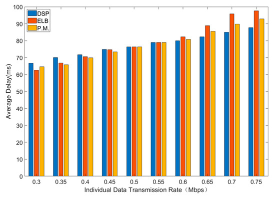 Figure 4, with the increase of individual data transmission rate, the average delay will increase. Under the small individual data transmission rate and light network load, the average delay of centralized DSP routing algorithm is larger than that of the other two algorithms. This is because interval type-2 fuzzy set routing algorithm and ELB algorithm can send the traffic via alternate paths, which greatly reduces the queuing delay. As individual data transmission rate increases, the load increases. Because the centralized DSP algorithm continues to try the same transmission path to reduce the average delay at the cost of the higher packet loss rate, the average delay of the centralized DSP algorithm is smaller than that of interval type-2 fuzzy set routing algorithm and ELB algorithm when the load is larger.