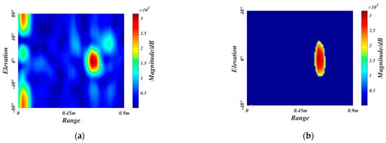 Figure 9a,b shows the RDM before and after removing the vibration. Our algorithm can retain the gesture region well and filter out the micro-vibration objects and local anomaly regions for subsequent processing.