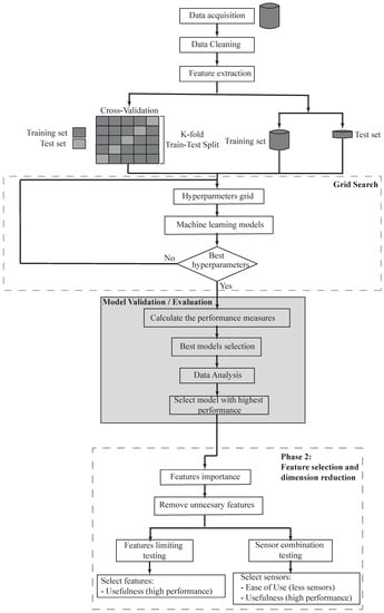 In machine learning, there are several methods of data partitioning for experimentation. The most popular methods are typically referred to as training/test partitioning or cross-validation [,]; both were implemented in this research to evaluate the best classifier performance.