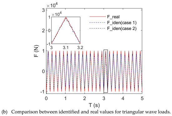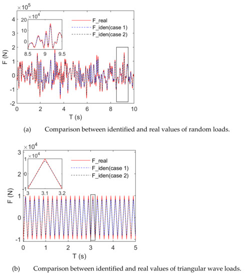 - Noise can be suppressed to a certain extent by means of our load identification integral algorithm. Numerical simulations indicate that the correlation coefficient between identified and real loads can be above 0.9 in the case in which the measurement noise level is 5%. Our cantilever beam tests showed that the load frequency range can be identified accurately by means of our algorithm, and the load identification errors focus on peaks or troughs.
