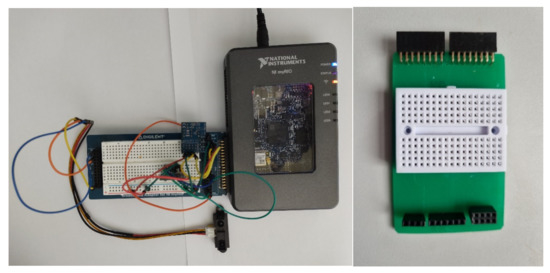 Figure 1 shows the prototype breadboard (left) and the PCB developed using the Voltera PCB Printer (right), which is used to connect the sensors directly to myRIO.