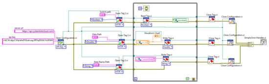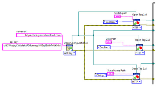 Figure 7 illustrates the opening configuration for the SystemLink Cloud, while the whole VI is pictured in