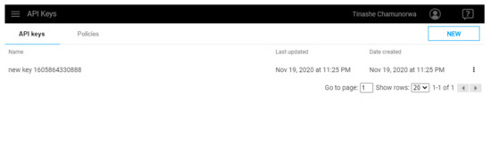 | 2 | Select API keys and click on NEW to create a new key and copy the generated key. It is highly recommended to save it, as it will be provided only once. |