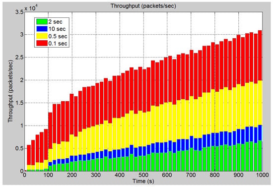 Case 4: Throughput (packets/s) for different inter arrival time.