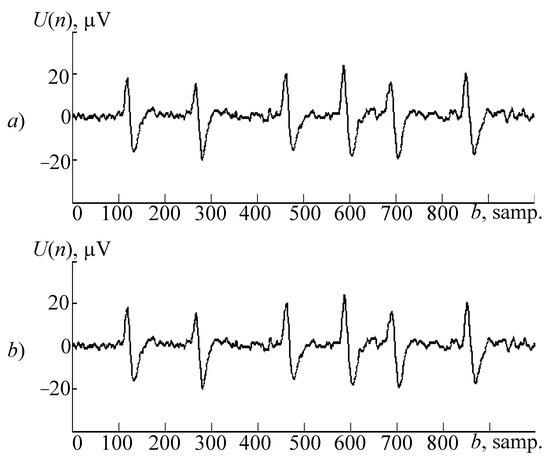 Figure 4b). This signal has a complex shape and obtained by serial connection of a broken signal’s fragments (