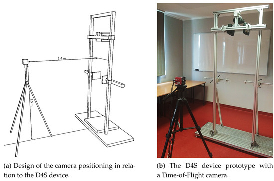 The D4S device uses an SR4000 camera (MESA Imaging 107 AG, Switzerland) capable of acquiring depth images in x, y, z coordinate matrices containing 144 × 176 measurement points. The camera allows point cloud acquisition at a frequency of 30 Hz.
