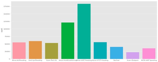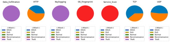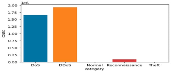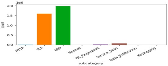 Bot-IoT dataset: The selection of the BoT-IoT dataset is to display various types of security threats and cyber-attacks. These were categorized into the main category of attacks and the subcategory of attacks as illustrated in Table 5, Figure 6 and Figure 7. Due to the limitations of IoT devices, DDoS and DoS are more prevalent than other attacks. Therefore, the most significant attacks that IoT devices encountered are DDoS and DoS.