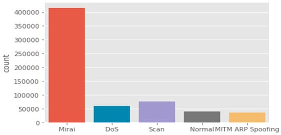 We used two real traffic IoT datasets: the Bot-IoT dataset [] and the IoTID20 dataset []. We selected 5%, which included full features from the Bot-IoT database, while the second dataset was fully selected in the experiment. The proposed model and experiments were trained and tested using the Google Collaboratory (Colbab) with Graphics Processing Unit (GPU), Python, TensorFlow, Scikit-Learn, SkFeature, Numpy, and Pandas.