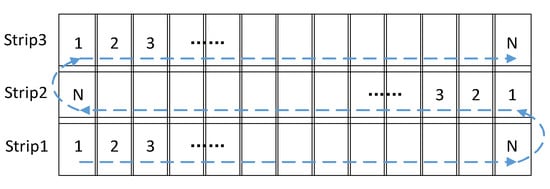 The working principle of the imaging system is shown in Figure 4. The system forms one strip through scanning imaging and forms the second strip by scanning in the opposite direction after the prior strip is finished. The overlapping ratio of the two adjacent strips is not below 10%. Through continuous scanning imaging, a large and high-resolution mosaic image of the target area can be formed. When the system performs wide-area reconnaissance/search missions, the system performs maximum-angle scanning imaging to cover the largest area in the shortest time. When the system performs surveillance/tracking tasks in a small and specific area, it only scans in a small range to obtain more exposure time.