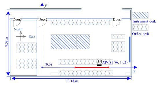 Figure 3 shows the layout of the experiment environment, which is a 13.18 m × 9.58 m hybrid office room with some instruments and office supplies. All experiment data were processed on a computer with Intel Core i5-10400F CPU, 16 GB RAM and NVIDIA GeForce RTX 2060.