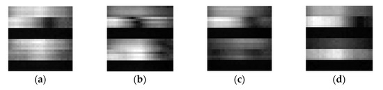 where and are the corresponding amplitude and phase, respectively. In this paper, the average interval between adjacent received CSI packet was about 100 ms, which means that at least 5 packets could be received during each foot contact with the ground. Moreover, it had 6 channels (2 transmitting antennas, 3 receiving antennas) in each data packet and each channel had 30 subcarriers. Therefore, a 30 × 30 (5 packets × 6 channels × 30 subcarriers) matrix of amplitudes could be formed to a location-related CSI image as shown in Figure 7, reflecting a weak signal in third receiving antennas which acted as auxiliary antennas.