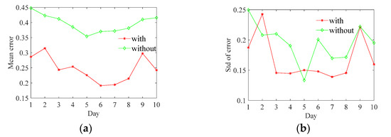 The quantitative comparisons between ‘With’ and ‘Without’ schemes in Table 5 show that the error reduction percentile of ‘With’ scheme on ‘Without’ scheme stabilizes at around 65%, and the corresponding Std reduction is more than 40% in the three different scenarios.