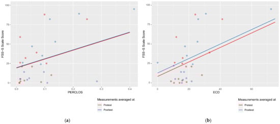 Estimated marginal effects for mixed linear models with (a) PERCLOS and (b) ECD as the main predictors.