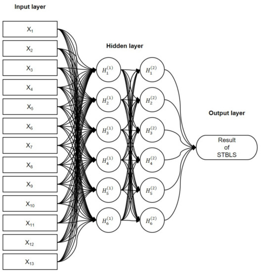 Figure 5 shows the structure of the proposed neural network. Two hidden layers contain six nodes per layer, and the output layer uses one of the STBLS test scores. The activation function () used here is the Rectified-Linear-Unit function (ReLU).
