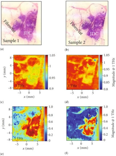- Fitzgerald, A.J.; Wallace, V.P.; Jimenez-Linan, M.; Bobrow, L.; Pye, R.J.; Purushotham, A.D.; Arnone, D.D. Terahertz Pulsed Imaging of human breast tumors. Radiology 2006, 239, 533–540. [Google Scholar] [CrossRef] [PubMed]