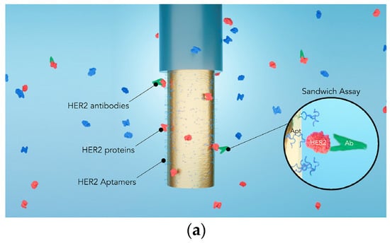 - Loyez, M.; Lobry, M.; Hassan, E.M.; DeRosa, M.C.; Caucheteur, C.; Wattiez, R. HER2 breast cancer biomarker detection using a sandwich optical fiber assay. Talanta 2021, 221, 121452. [Google Scholar] [CrossRef] [PubMed]