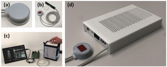 To the best of our knowledge, there are no systems available that fulfil the above defined requirements. The use of advanced classification approaches is not possible with classical clinical sonography systems, as they do not provide access to radio frequent ultrasound data. Ultrasound systems for research applications such as the Vantage Ultrasound System (Verasonics, Inc. Redmond, WA, USA), the ULA-OP [], the systems from the Technical University of Denmark [] or the DiPhAS by Fraunhofer IBMT (Sulzbach, Germany) [] provide access to this type of data, but are mostly not certified for clinical use, and more importantly, they are complex, bulky and costly devices. The latest generation of point of care ultrasound (POCUS) devices, such as the Butterfly iQ or Vscan [] by GE has decreased the costs by an order of magnitude when compared to high-end sonography machines, and can be used in bedside settings due to their miniaturization. However, the availability of care staff still represents a limiting factor when it comes to frequent monitoring postoperatively. Finally, dedicated devices for bladder monitoring such as DFree (Triple W, Tokyo, Japan) or SENS-U [] (Novioscan, Nijmegen, The Netherlands) have a particular focus on incontinence management. These systems directly generate bladder filling level-related parameters and do not provide access to the underlying ultrasound signals. Other ultrasound systems optimized for urological applications such as BladderScan (Verathon, WA, USA) measure the bladder volume, but are based on hand-held probes, which limits their suitability for continuous monitoring.