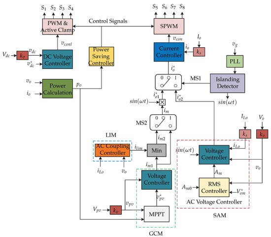 - Öztürk, S.; Çaditoi, I. A generalized and flexible control scheme for photovoltaic grid-tie microinverters. In Proceedings of the 2015 International Conference on Renewable Energy Research and Applications (ICRERA), Palermo, Italy, 22–25 November 2015; pp. 699–703. [Google Scholar] [CrossRef]